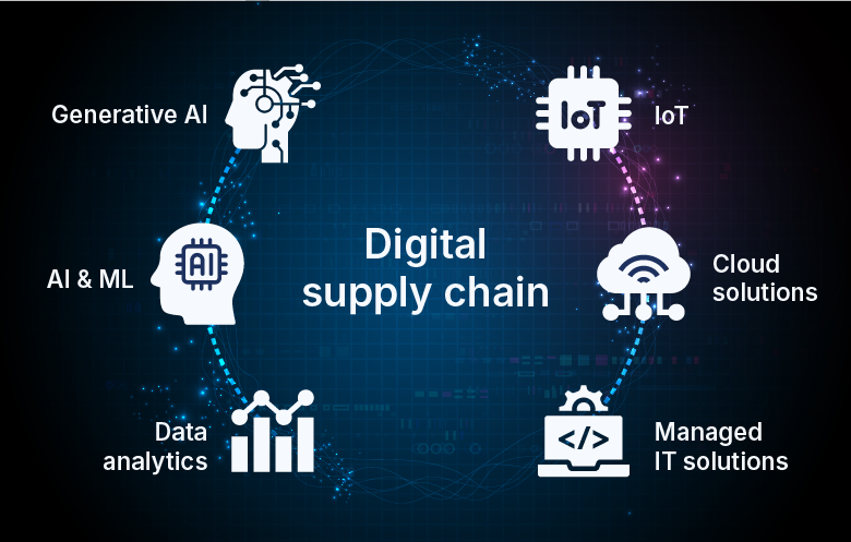 Digital Supply Chain solutions optimize the flow of goods, information, and resources across supply networks. SG Zyntexa builds supply chain management systems that improve logistics visibility and operational control. These technologies help businesses monitor inventory and manage distribution effectively. Through digital transformation, SG Zyntexa enhances supply chain efficiency and transparency.